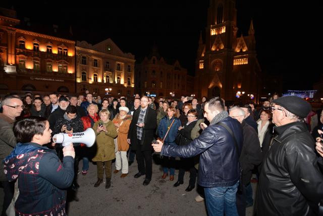 Novinari i dopisnici desetak čačanskih redakcija održali su večeras na glavnom gradskom trgu protest "Novinari ne kleče" na kojem su osudili političke pritiske na medije. #NovinariNeKlece #Kragujevac plus #Fotoreporteri pic.twitter.com/ONANdfmvzk