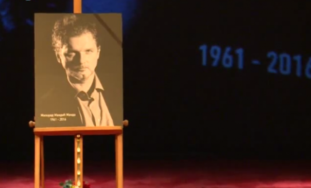 Komemoracija u prepunom pozorištu počela je pesmom "S one strane duge" i scenama iz predstava, filmova, prikazivanjem privatnih fotografija.