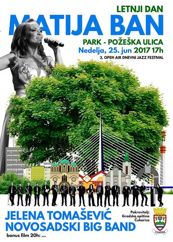 Koncertna sezona u junu u prestonici, nikad nije bila bogatija, ali će ovo biti jedini muzički događaj sa džez repertoarom u rasponu od Glen Milera do Ele Ficdžerald, u centralparkovskoj atmosferi stoletne hladovine lipa i platana na Banovom brdu i u sinergiji Jelene Tomašević i NS big benda.