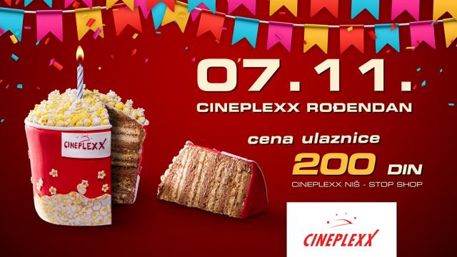 Drage Nišlije, družimo se već godinu dana i sa velikim zadovoljstvom vas pozivamo na veliko rođendansko slavlje bioskopa Cineplexx Niš u Stop Shop ritejl parku, u utorak 7. novembra! Dođite da zajedno proslavimo prvi rođendan najmodernijeg bioskopa u gradu uz specijalnu cenu ulaznica od 200 dinara za sve projekcije, navodi se u saopštenju Cineplexxa.