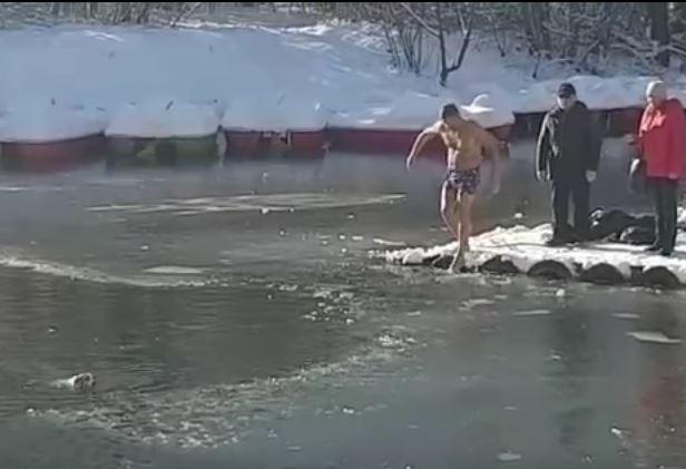 Kada je ovaj Rus shvatio da se nesrećni pas koprca u zamrznutom jezeru nije časio ni časa već je odmah počeo da skida garderobu kako bi ušao u vodu da ga izbavi. Pas nije mogao sam da priđe obali zbog leda koji se stegao i na koji nije mogao da se popne.