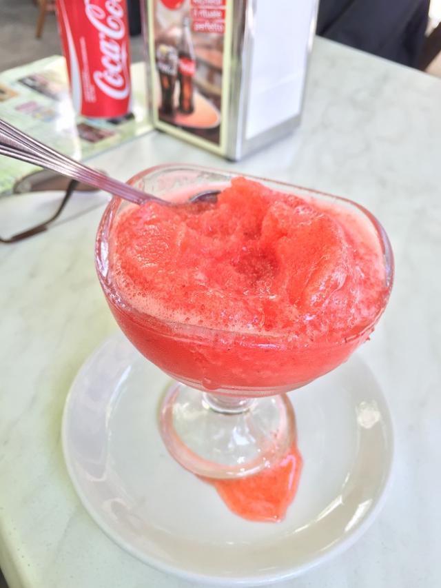 Ima različitih ukusa, najviše se jede sa bademom (meni se badem nije svideo, ali je zato jagoda bila odlična), iseku slatku zemičku koju nazivaju brioš, koja izgleda kao buhtla i u nju stave granite ili umaču brioš u granitu.