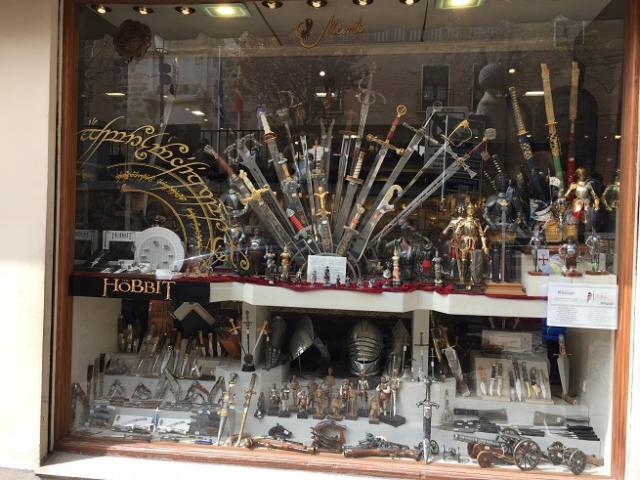 S obzirom na to da se ovde oduvek kuju i prave mačevi, u Toledu smo naišli na veliki broj radnji u kojima ih i danas možete kupiti. Pronaći ćete ih iz svih perioda, počev od templarskih, preko krstaških i viteških. Suvenir tako specifičan za ovaj grad.