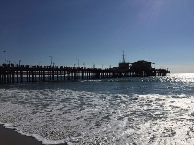 Krenuli smo od Santa Monike, retko interesantnog dela grada. Nije previše velika, ali je uredna i lepa za život. Okupana suncem čak i u februaru. Lepa peščana, nekoliko milja duga plaža sa dokom na kome završava istorijska Ruta 66 koja vodi od istočne do zapadne obale i Pacifika.