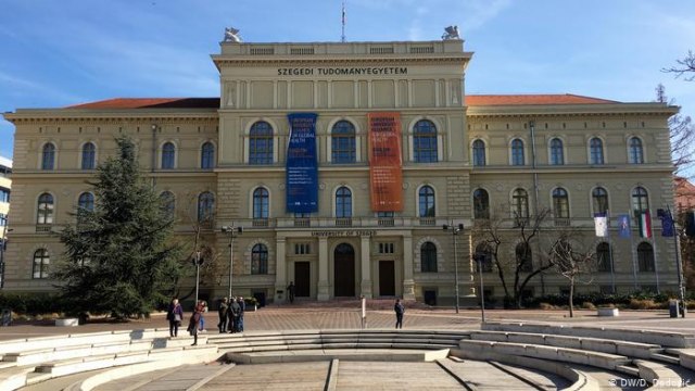 Preko puta je zgrada segedinskog Univerziteta, koji je ovamo preseljen iz Kološvara, kada je posle Velikog rata taj grad pripao Rumuniji pod imenom – Kluž. O njemu je rođen Matija Korvin, mađarski kralj kojem do danas podižu spomenike gde god ima Mađara. Levo od Univerziteta je Ungar-Majerova palata, remek delo pozne secesije. Ugaoni toranj je opasan limenim skulpturama devojačkih figura. "Za ovo se zaista može reći da je istovremeno spokojno, fino, onirično i bizarno.", zabeležio je Tibor Bakonji o ovom tornju u svojoj monografiji o arkitekti Ede Mađaru.