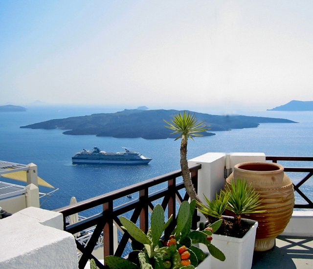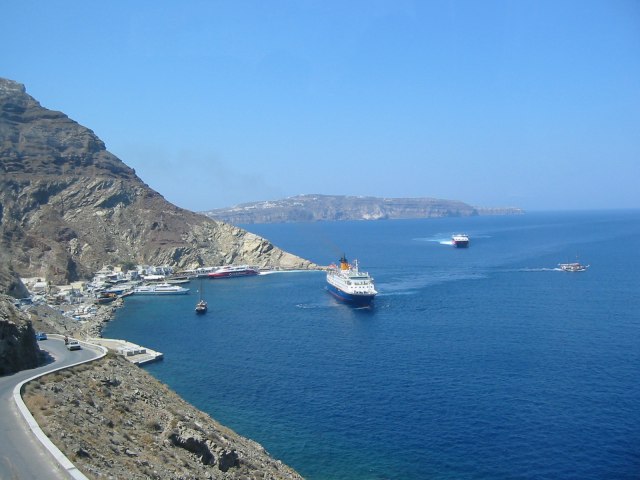 Oni veliki, imaju problem da se ukotve uz luku Atinio - "unutrašnji" deo ostrva. Ne zbog strmine uz koju pristaju, već zbog činjenice da sa te strane, zbog erozije koju je pre oko 4000 hiljada godina stvorila erupcija vulkana (kaldera), dubina mora seže do 380 m, nedovoljno za dužinu prosečnog lanca sidra.