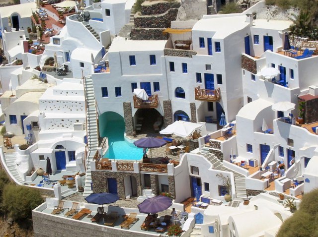 Parčići efektnog kamenja, na mnoštvo načina ubacuju se kao dekoracijau zidove kuća, bele i plave kupole crkava, restorane i kafiće.