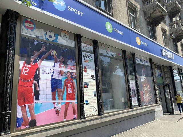 U jednoj od ulica, na prodavnici sportske opreme nalazi se velika reklama na kojoj dominira slika srpskog odbojkaša Marka Podraščanina.