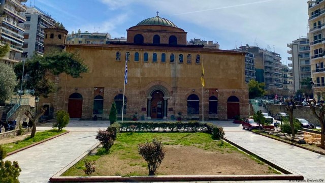 Za vreme osmanske vladavine je – kao i većina solunskih crkava – pretvorena u islamsku bogomolju – Kazandžijsku džamiju, da bi obnovom grčke samostalnosti opet postala crkva. A desno od spomenika je Begov hamam koji zovu i Rajskim kupatilom. Najbolje očuvano tursko kupatilo na teritoriji Grčke podignuto je za vreme vladavine Murata II 1444.