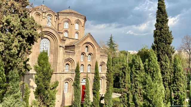 Pošli smo Egnatijom na istok i posle desetak minuta smo se našli kod Dikastiriona – „Sudskog trga”, zapravo velikog parka. Na ulazu u njega se kao u skoro svakom grčkom gradu nalazi spomenik jednom od političkih utemeljitelja moderne Grčke Elefteriosu Venezelosu. Levo od spomenika je Panagija Halkeon, vizantijska crkva iz 11. veka okružena čempresima, a posvećena Bogorodici kao zaštitnici kazandžija.