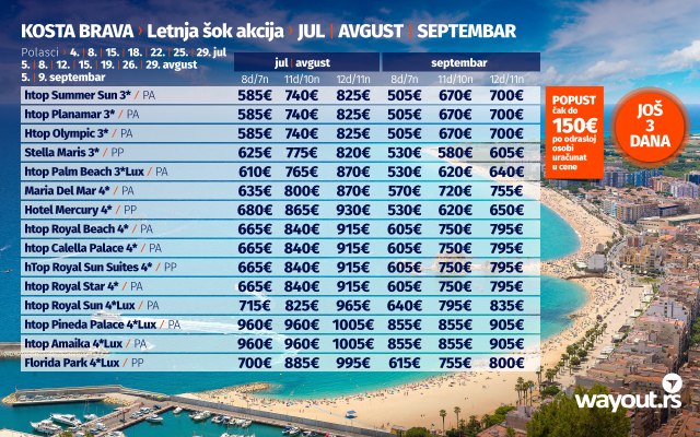 I dalje niste rezervisali letovanje? Kipar i Kosta Brava sa Wayout-om su pravi izbor