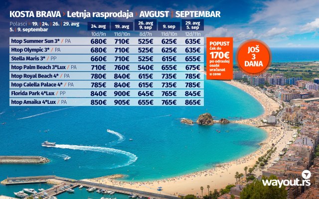 I dalje niste rezervisali letovanje? Hurgada ili Kosta Brava sa Wayout-om su pravi izbor