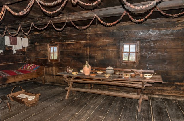 Tipična kuća iz tog vremena imala je dve prostorije – sobu i kuhinju. U kuhinji se provodio dan, a ognjište je bilo centar kuće. Tu se sedelo, tu su se pričale priče, tu su se pekli krompiri, pravila supica…