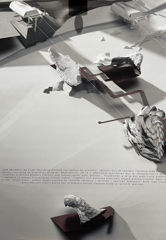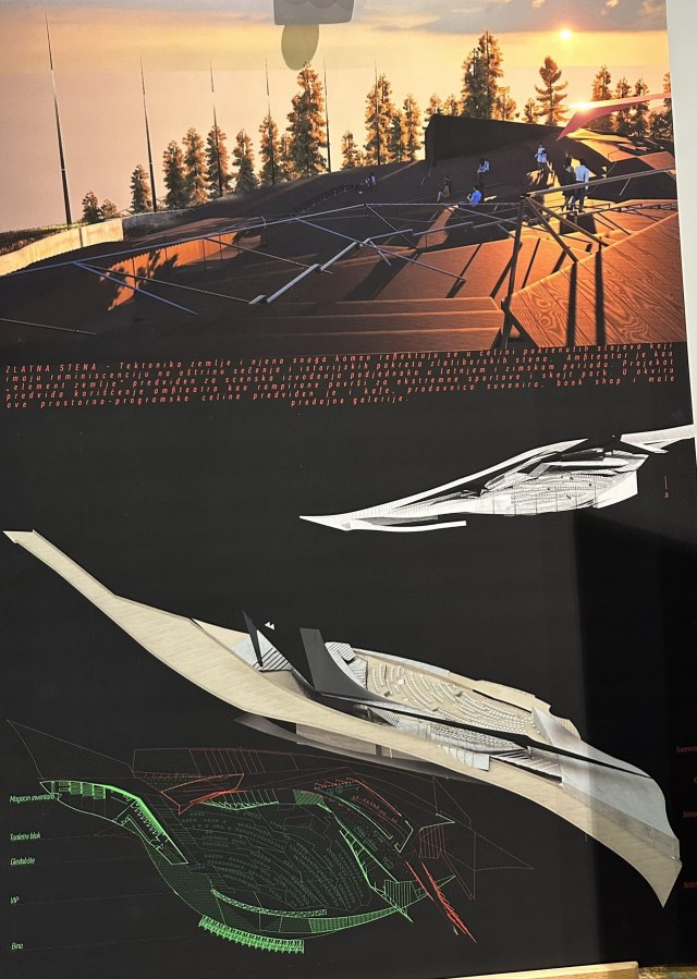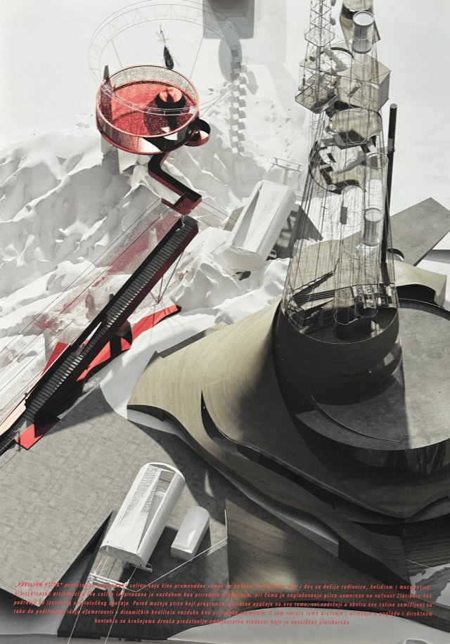 "Kao što je poznato, Zlatibor je specifična vazdušna banja i ima fantastične biljne i životinjske vrste. Ideja elementa vazduha interpretirana je u jedan paviljon koji ima ideju da simulira prolazak ptica, let ptica", rekla je Vesnić.