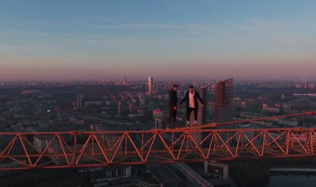 Dvojica avanturista odlučila su da posmatraju Moskvu iz zastrašujuće perspektive – viseći sa krana držeći se samo jednom rukom za šipku.