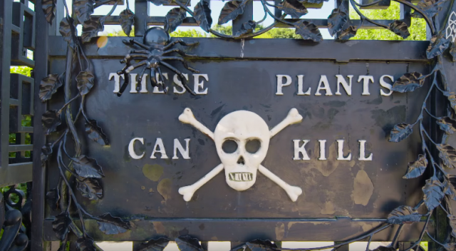 Natpis na ulazu u vrt – “Ove biljke mogu da ubiju” niko ne smatra šalom, naročito nakon što se prošlog leta sedam posetilaca onesvestilo prolazeći kroz vrt, a onesvestili su se verovatno zbog posledica udisanja mirisa ovih biljaka.