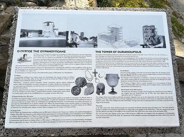 Kada je reč o istoriji moderog Uranopolisa, vek unazad, kula je dugi niz godina bila dom britansko-australijskog Džojsa i Sidni Loh. Oni su u okviru humanitarnje kampanje stigli na Halkidiki sa ciljem da pomognu izbeglicama Grčko-Turskog rata (1919-1922), i tamo ostali više od 50 narednih godina.