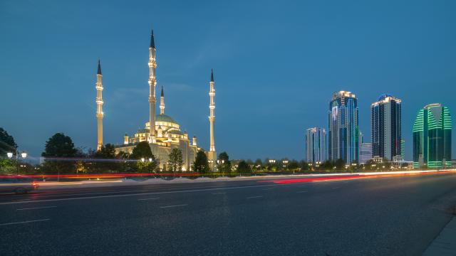 S neba Grozni izgleda mirno: automobili se kreću po bulevarima koji polaze sa centralnog trga, na kome se nalazi blistava džamija "Srce Čečenije" i idu ka periferiji grada.
