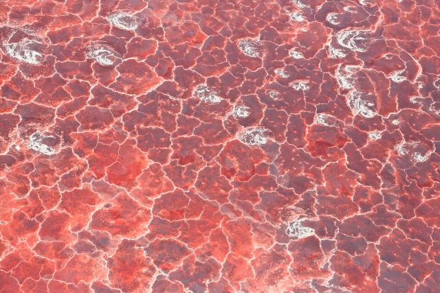 Jezero dobija ružičastu nijansu tokom sušnih sezona. Kako voda isparava, cijanobakterije u jezeru započinju fotosintezu, pretvarajući tako vodu u toksičnu tečnost boje žvakaće gume.