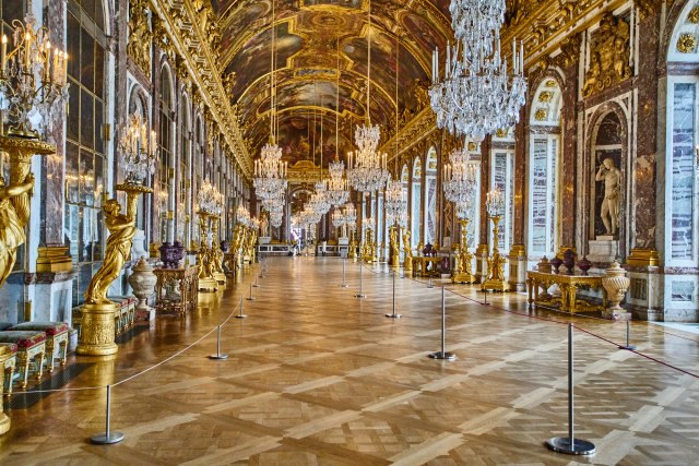Dvorana ogledala je napravljena uz pomoć krađe. U dvorani postoji 357 ogledala, a 1678. godine, kada je dvorana napravljena, ogledala su bila luksuz. Kako je Venecija imala monopol nad pravljenjem ogledala, Francuzi su morali da namame zanatlije da prave ogledala za Versaj.