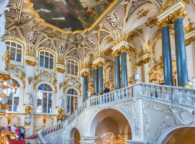 Najposećenija prostorija Ermitaža se nalazi na prvom spratu, a u pitanju je ogromna soba za doček gostiju. Do nje se dolazi čuvenim Jordanovim stepenicama. Sva ekstravagancija dinastije Romanov se ogleda u toj sobi.