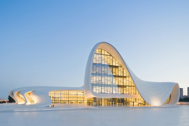 Vratimo se na futurističko zdanje iračko-britanskog arhitekte, gospođe Zahe Hadid, koja je angažovana da osmisli i pretvori u javu ovo remek-delo građevinarstva, dizajna i mašte. Građeno je punih pet godina a otvoreno je 2012. godine i u sebi krije preko 57.000 m2 izložbenog prostora, sale za kongrese, sastanke, konferencije, sa stalnim muzejskim postavkama. Osim što veliča kult voljenog predsednika, centar omogućuje posetiocima jedinstveni osećaj da hodaju kroz budućnost zakrivljenim linijama enterijera mlečno bele boje, gde se platforme prepliću sa hodnicima i stepeništima koja vode iz sale u salu, od eksponata do eksponata. Prosto rečeno, neprepričljivo iskustvo koje se ne propušta.