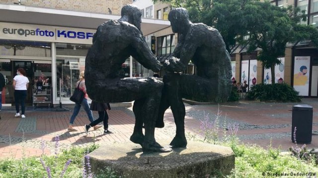 Gužvu mirno posmatra spomenički lik „Duvača“ koji krasi fontanu. On ukazuje na srednjovekovni dortmundski običaj da na pijačnom trgu zabavu nude putujući muzičari. Pandemija im je ove sezone pokvarila posao, ali figura je tu da podseti na to da su gradovi bez muzike gluvi i nemi. Muzika nastavlja prekinutu komunikaciju drugim sredstvima. Zato nas spomenik pod nazivom "Komunikacija?" nemačkog kipara Hajnriha Brokmajera već skoro četiri decenije opominje da ne zaćutimo kao njegove dve sedeće, a lebdeće bronzane figure u Kampštrase.