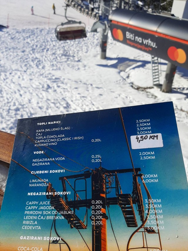 Tako smo saznali da čaj i kafu možete da popijete za 150 dinara, negaziranu vodu za 120 dinara, limunada košta 240 dinara, a negazirani sokovi 210, a gazirani 240 dinara.