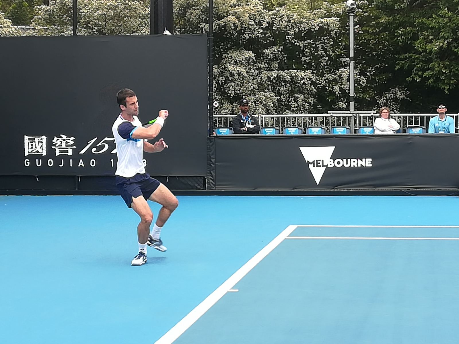 Čim se završi duel Đerea i Nišioke, na isti Teren 15 izlazi drugi srpski predstavnik Dušan Lajović. Uskoro nastupa i Filip Krajinović. Prvog dana AO će igrati i Novak Đoković