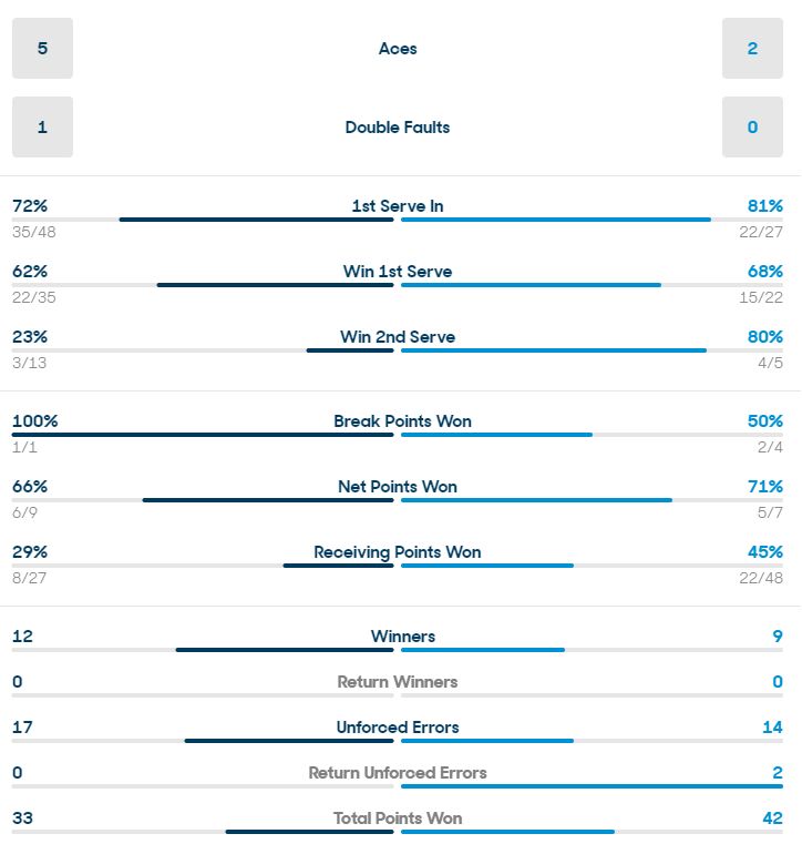 | 6:4, 4:6, 2:6, 6:3, 6:4 | |