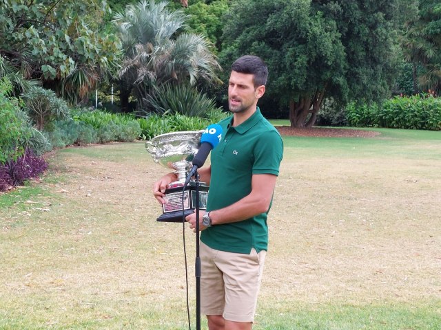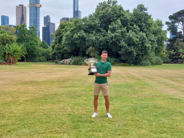 Desetostruki šampion Australijan opena, Novak Đoković, prošetao je trofej kroz botaničku baštu u Melburnu.
