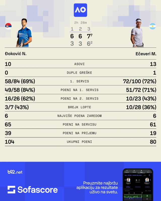 Ovo mu je bio 100. meč u Melburnu i 92. pobeda – a deset puta je dizao trofej.