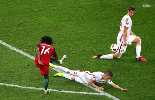 33' GOOOOOL! Portugal je izjednačio na 1:1. Nani je dodao loptu do Renata Sančeza, a 18-godišnji vezista je prebacuje na levu nogu, a onda sjajnim šutem sa ivice kaznenog prostora trese mrežu Poljske.