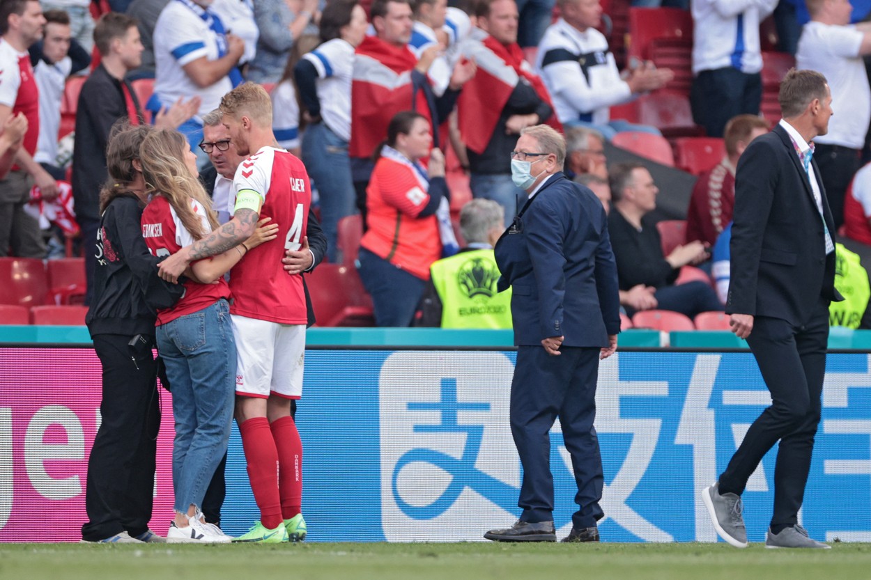 Denmark and Finland players have returned to the pitch in Copenhagen.#EURO2020 | #DEN #FIN pic.twitter.com/3n1Halz8JO