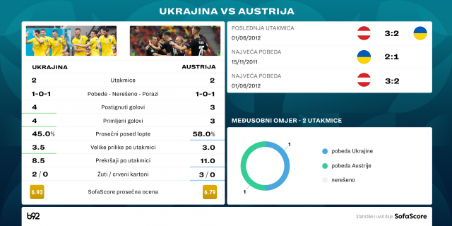 Bod je dovoljan da obe selekcije odu u nokaut fazu i to bi Ukrajina išla sa drugog, a Austrija sa trećeg mesta.