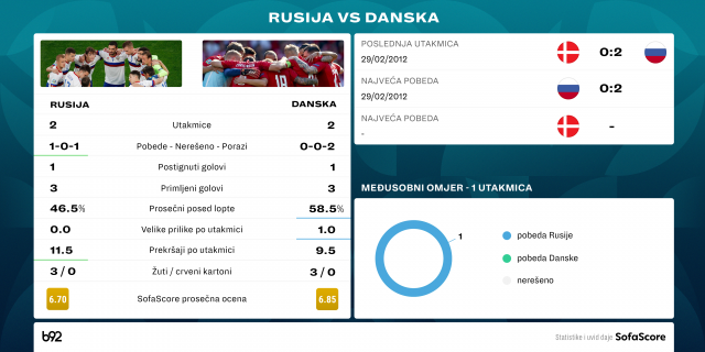 Pošto Danska mora da napadne i izraziti je favorit na ovom meču, prava stvar su golovi koje postiže Rusija.