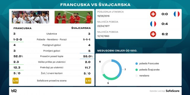 Švajcarska će biti oprezna i pokušaće da "udavi" Francuze, pa sličan ishod očekujemo i danas.