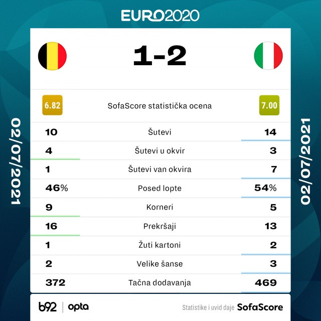 Italijani su više imali loptu u nogama, dok je Belgija igrala na prepoznatljive brze kontre.