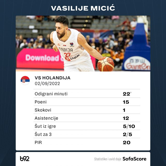 Micić je brzo vezao tri asistencije i neke ukradene lopte i povukao Srbiju u najtežim momentima deonice kada se činilo da će Holanđani uspeti da zaprete, a ponovo je Marinković bio taj koji se pojavio sa bitnom trojkom.