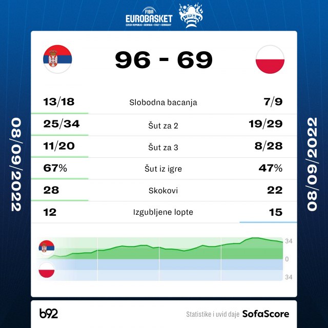 Bilo je opuštanja Srbije u tim trenucima, a naročito pri kraju prvog poluvremena. U nastavku su Poljaci uspeli da smanje i na minus 13, ali ne i više od toga.