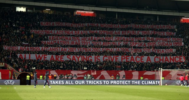 Zvezdaši su na pauzi između dva poluvremena podigli na severnoj tribini transparente na kojima su bile sve države u kojim su zapadne sile vršile ratne operacije, od Koreje 1950. godine do Sirije danas.