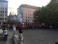 Policije je bilo u velikom broju, dok su meštani fotografisali navijače i snimali sa ulica, terasa...