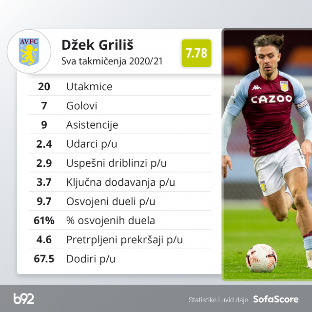 Griliš je bio direktno uključen u 17 golova Vile u PL ove sezone (6 golova, 11 asistencija) i stvara najviše šansi od svih igrača u ligama "petice" – 3,7 po meču.