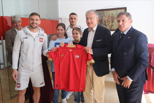 U delegaciji FSS bili su potpredsednik Branislav Nedimović, generalni sekretar Jovan Šurbatović, nekadašnji reprezentativac Nenad Bjeković, selektor Dragan Stojković sa stručnim štabom, direktor A reprezentacije Stevan Stojanović i reprezentativci, kapiten Dušan Tadić i Filip Kostić.