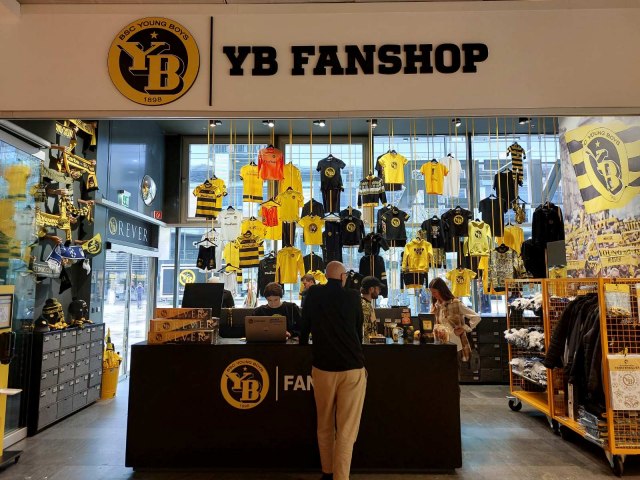 Teško da neki klub u Ligi šampiona ima manji prostor u kojem prodaje svoje stvari, ali definitivno je u njega stalo sve što je potrebno da bi se iz Berna otišlo sa nekim suvenirom.