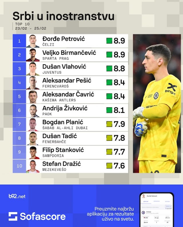 Petrović je sjajno brani za ekipu Čelsija, i sada će trener Maurisijo Poćetino biti na slatkim mukama koga će staviti među stative, jer se i prvi golman ekipe Robert Sančes oporavio od povrede.