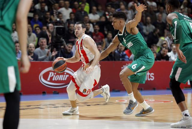 7' Dobra odbrana Zvezde, sve preuzimaju crveno-beli, ali Jankunas je fenomenalan, na čisto iskustvo i malo snage opet polaže loptu u koš – 65:56.