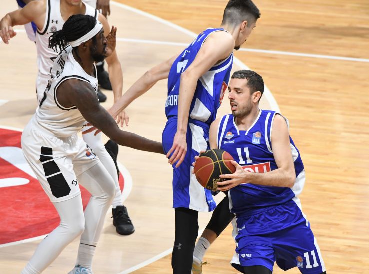 Erik Mika pogodio trojku. Dobar procenat Partizana sa distance i to je nešto što ih drži u igri, 29:29.