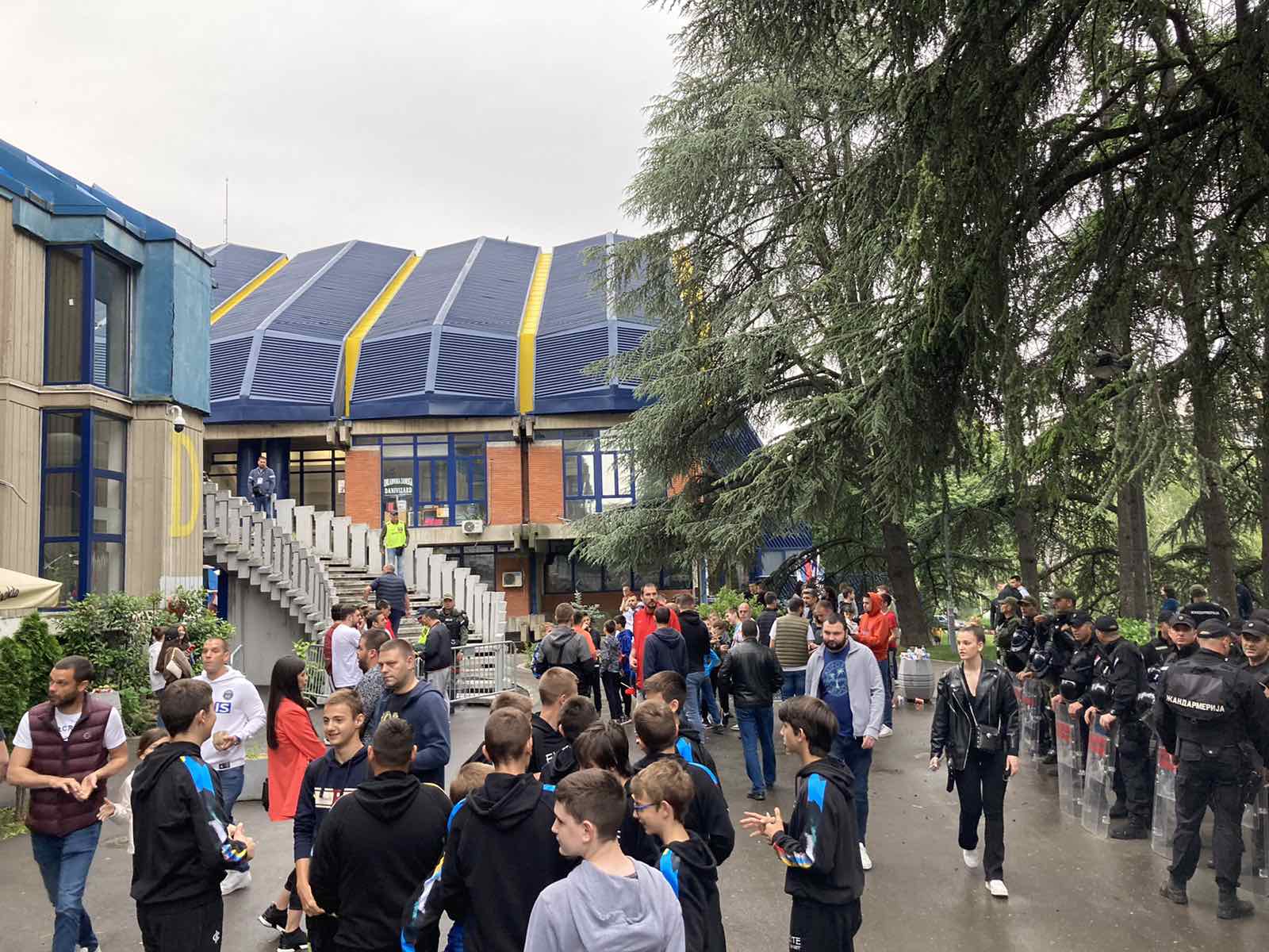 Izgleda da je Rade Zagorac ili neko iz delegacije Partizana pogođen u glavu sa neidentifikovanim predmetom, dok se čuju i neprimerena skandiranja sportskom direktoru Partizana Zoranu Saviću.