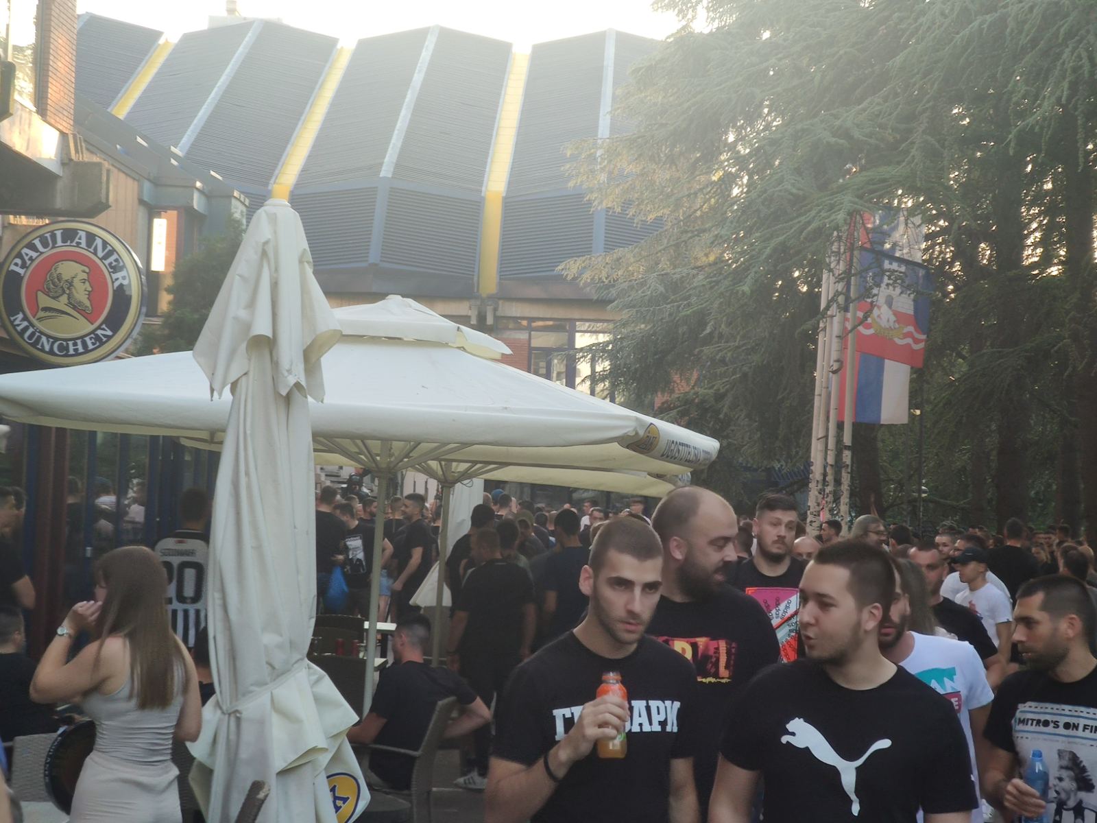Dvorana je puna, veliko broj upaljača je završio na terenu, a bačen je i topovski udar kada su igrači Zvezde izlazili na teren. Izgleda da su pozivi na smirivanje strasti bili uzaludni.